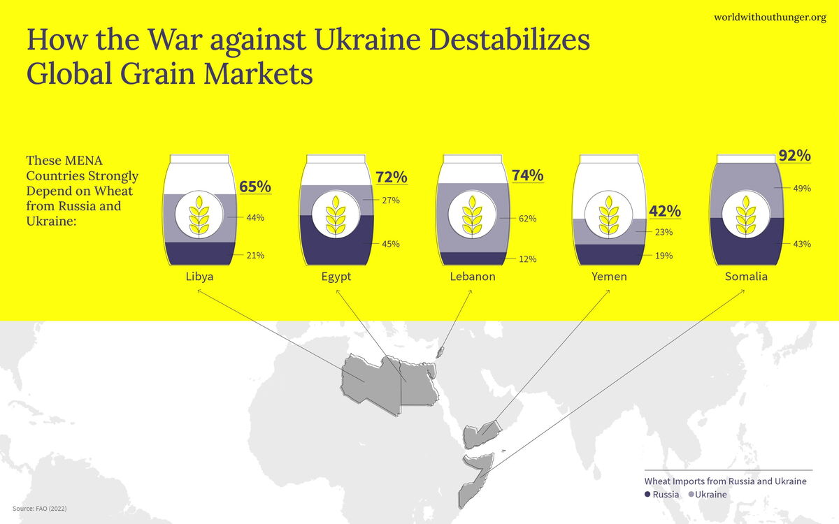 Russia’s war of aggression on Ukraine has not only caused destruction, suffering and the largest refugee movement in Europe since World War II – it has also had a noticeable impact on global agricultural markets already. An overview, which countries are affected most severely by the destabilized grain markets, and what comes next.